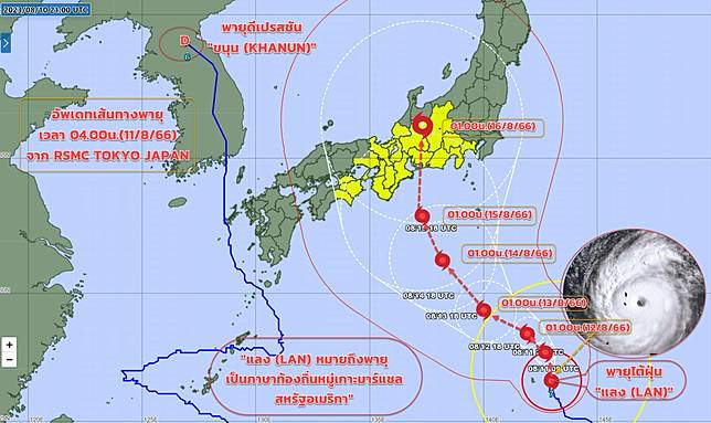 2023年8月11日,气象部门更新西太平洋风暴形势,今天上午(8月11日),朝鲜半岛上空出现风暴“贾昆”。已在西太平洋减弱为低气压和台风“浪(LAN)”。向西北移动 预计将于 2023 年 8 月 15 日至 16 日期间进入日本中部(静冈、东京),对那些计划在此期间前往日本旅行的人发出警告。出发前请查看天气情况。